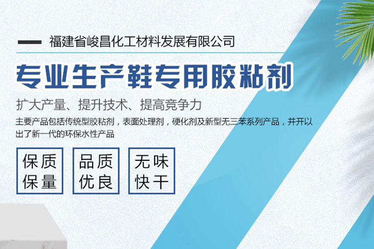 福建省峻昌化工材料發(fā)展有限公司總部設(shè)在中國(guó)鞋鄉(xiāng)——晉江。為更好、更方便服務(wù)廣大客戶,我司在廣東江門(mén)及福建均設(shè)有先進(jìn)的PU膠生產(chǎn)基地,歡迎廣大同行前來(lái)我司灌裝或批發(fā)銷(xiāo)售。公司是一家中外合資,面向亞太地區(qū)從事研究,生產(chǎn)銷(xiāo)售鞋用粘膠10多年的專(zhuān)業(yè)公司。從國(guó)外引進(jìn)生產(chǎn)能力為數(shù)萬(wàn)噸的全套先進(jìn)生產(chǎn),檢驗(yàn)設(shè)備,與德國(guó)Bayer,日本DENKA及美國(guó),西班牙等其它海外公司有著密切的原材料及技術(shù)合作。公司主要產(chǎn)品包括傳統(tǒng)型膠粘劑,表面處理劑,硬化劑及新型無(wú)三苯系列產(chǎn)品,并開(kāi)以出了新一代的環(huán)保水性產(chǎn)品。供應(yīng)國(guó)內(nèi)外鞋業(yè),手提箱包及建筑工程單位使用。公司始終保持產(chǎn)品的良好品質(zhì)及專(zhuān)業(yè)特性,并倍受廣大客戶好評(píng)。